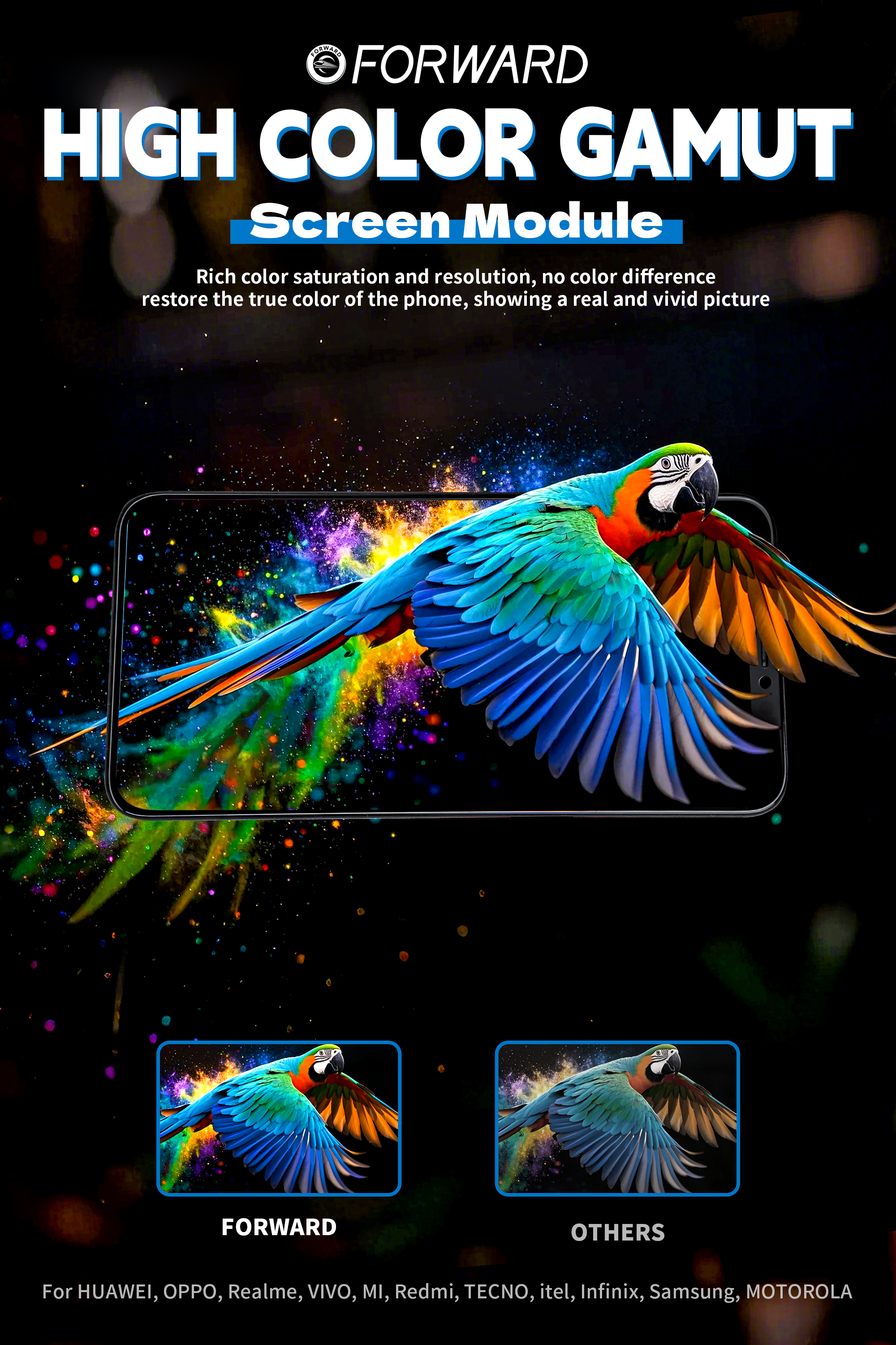 - 📈 Trải nghiệm thị giác vượt trội, không thua kém nhiều: Bạn sẽ ngạc nhiên với chất lượng mà màn hình Full HD Forward mang lại. Dù iPhone 15 Plus gốc là OLED, nhưng công nghệ Full HD của Forward đã được tối ưu hóa để mang đến sự sắc nét đáng kể, màu sắc tươi tắn, và độ tương phản ấn tượng. Bạn vẫn có thể tận hưởng mọi nội dung từ phim ảnh, game đến công việc một cách trọn vẹn, không cảm thấy bị "hụt hẫng". Tôi dám chắc, bạn sẽ thấy sự lựa chọn này không hề "làm giảm" trải nghiệm của bạn.