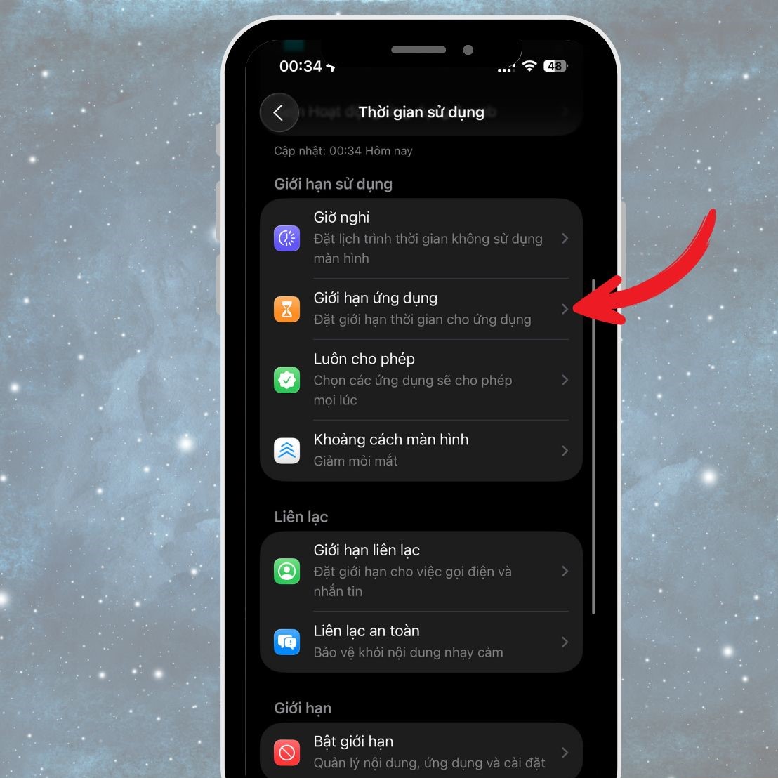 Bước 3: Chọn Giới hạn ứng dụng