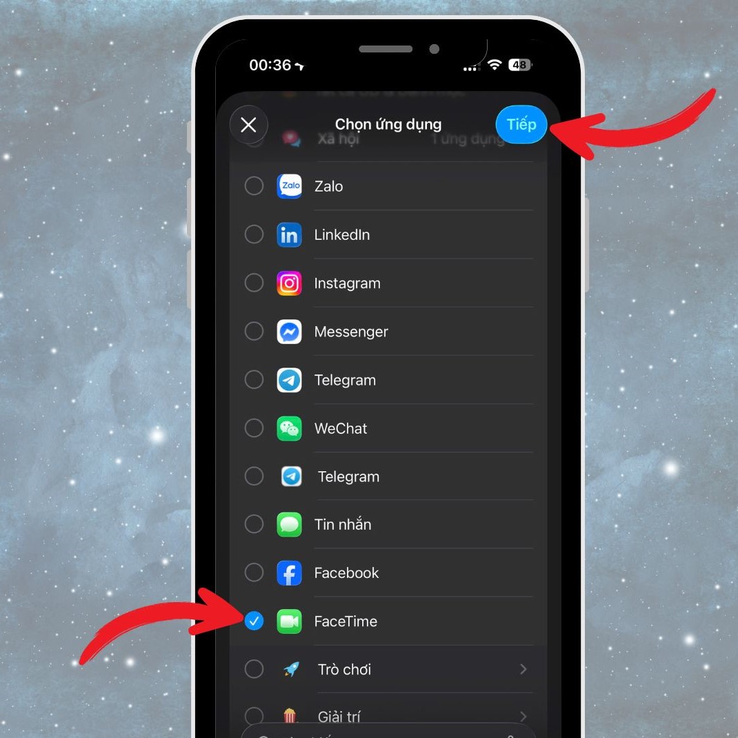 - Sau đó chọn nhóm ứng dụng liên quan đến Gọi điện và FaceTime hoặc các ứng dụng gọi điện khác mà bạn muốn quản lý.