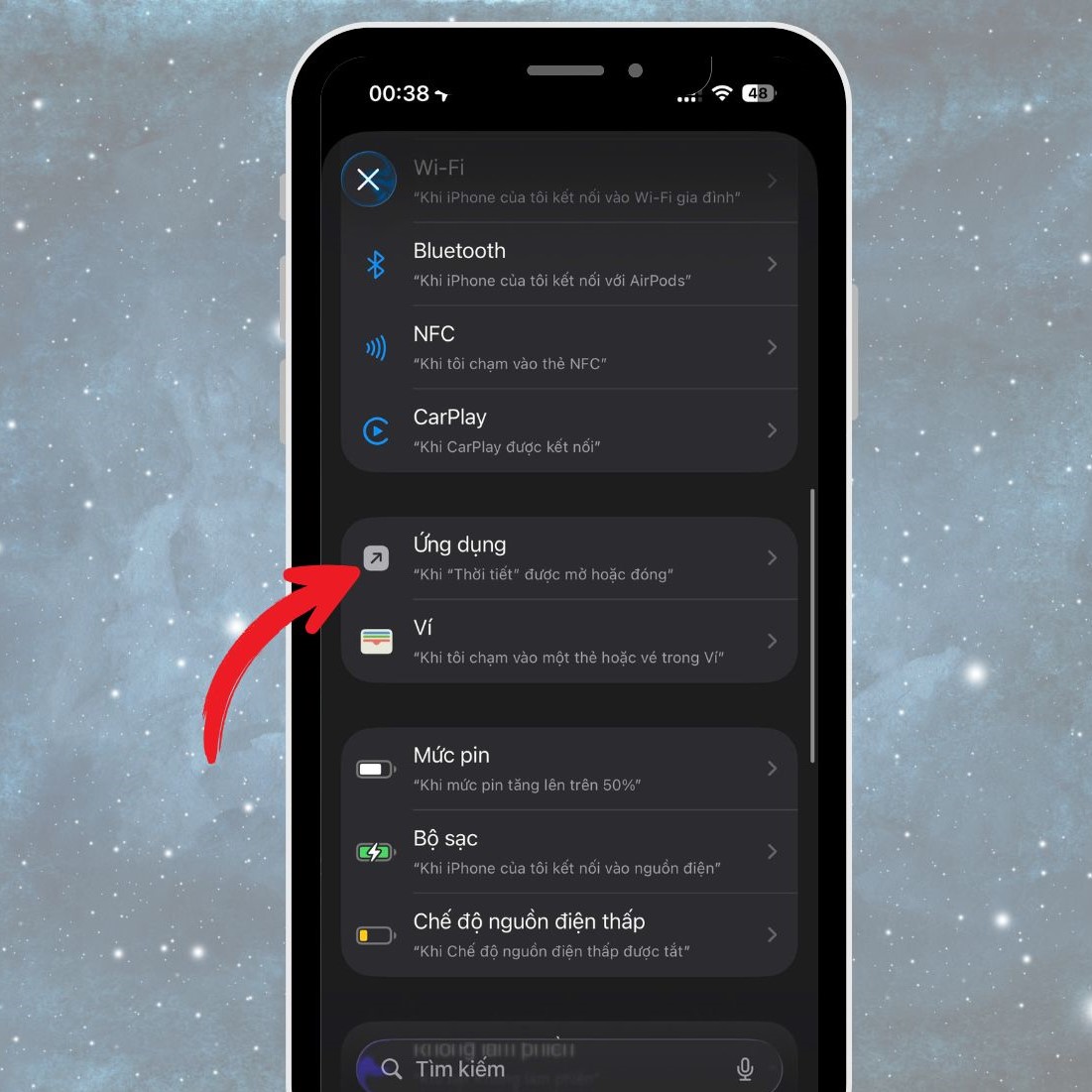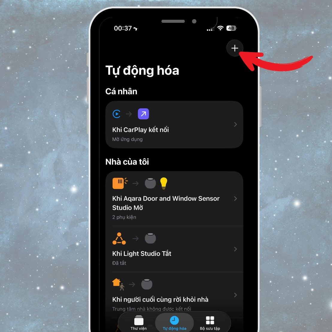 - Chọn tab Tự động hóa (Automation) ở thanh dưới màn hình,.