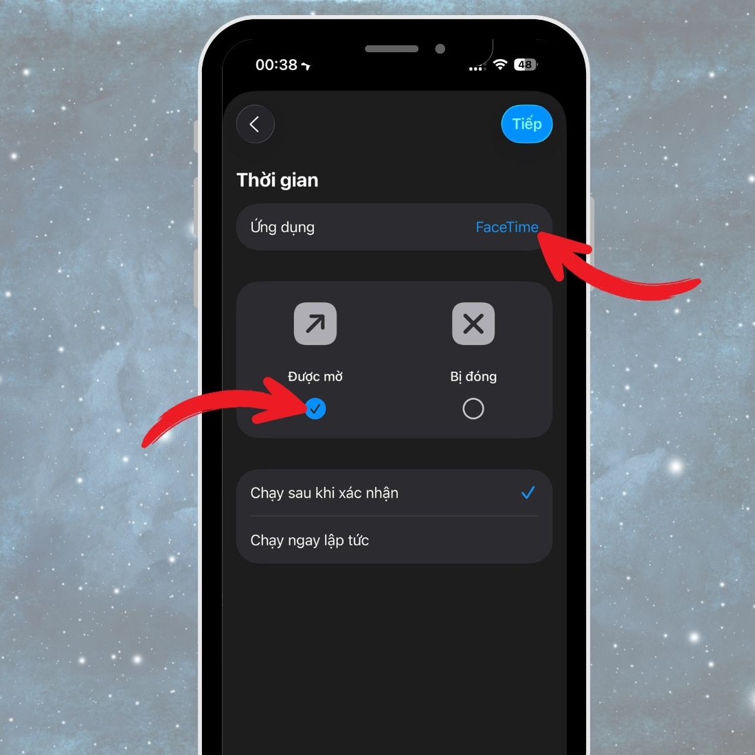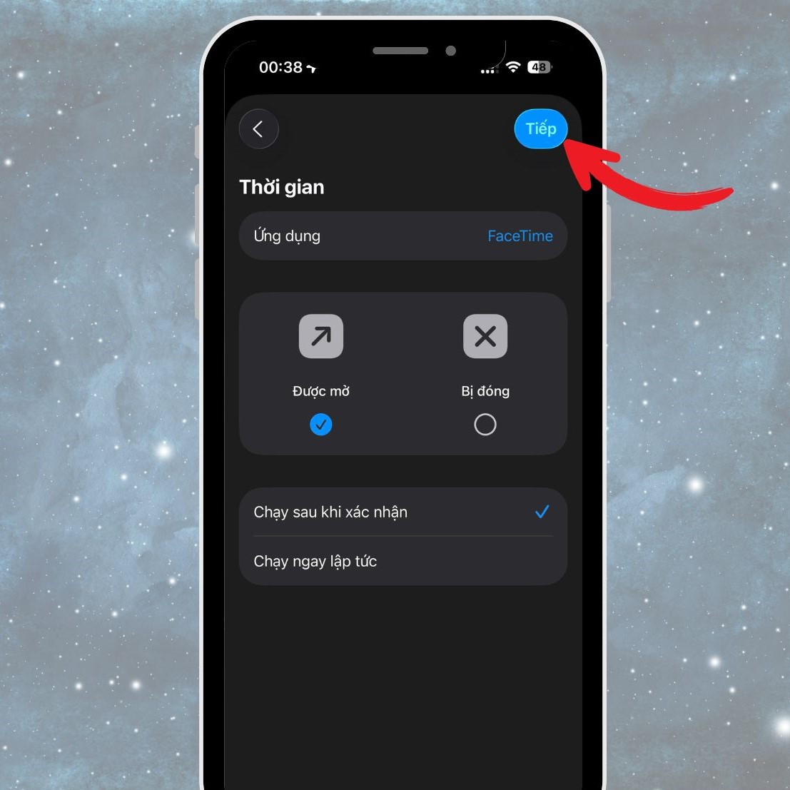 - Nhấn vào dấu tích để tiến hành thiết lập.