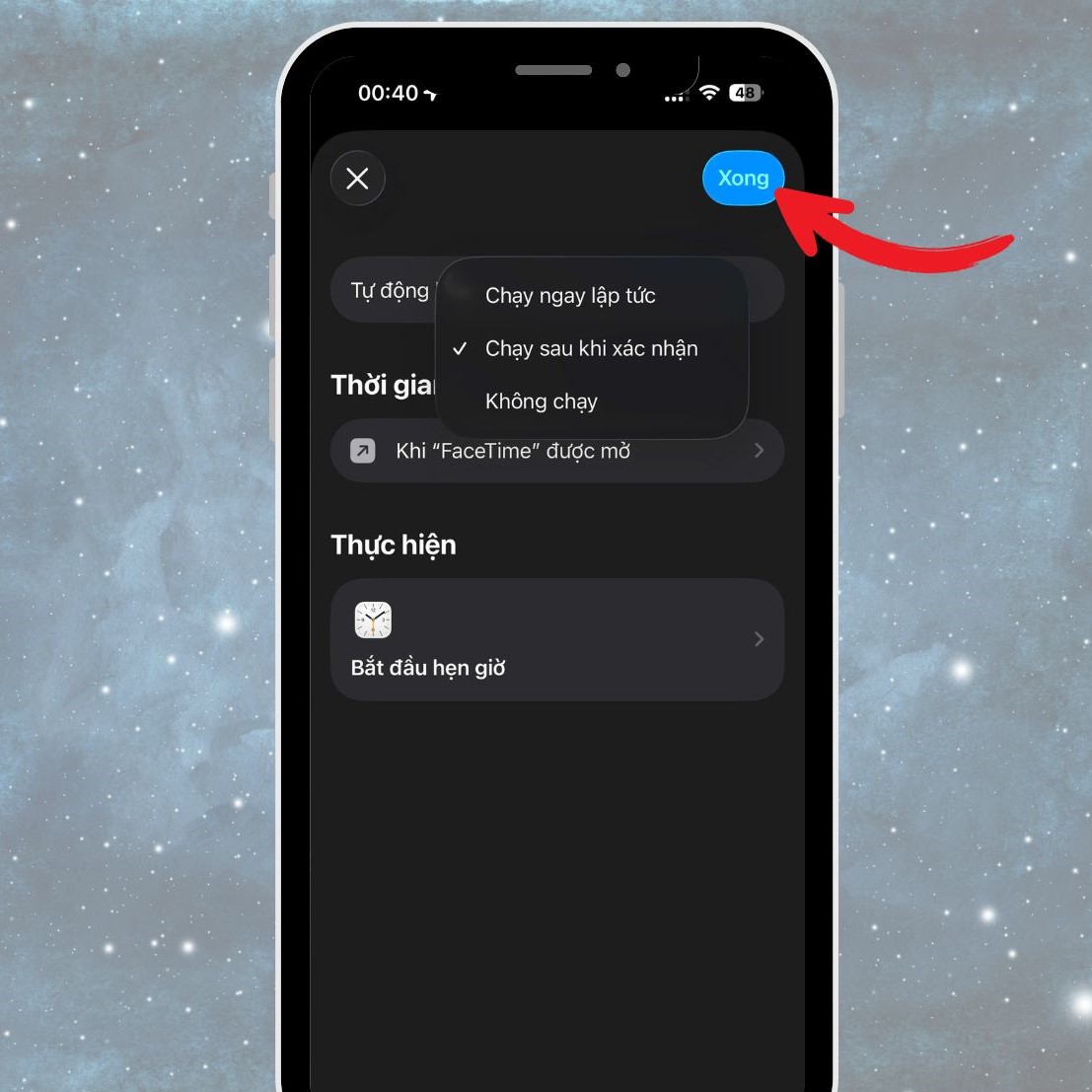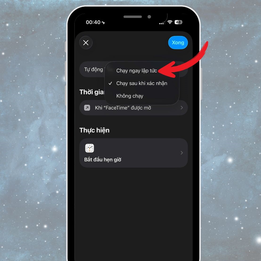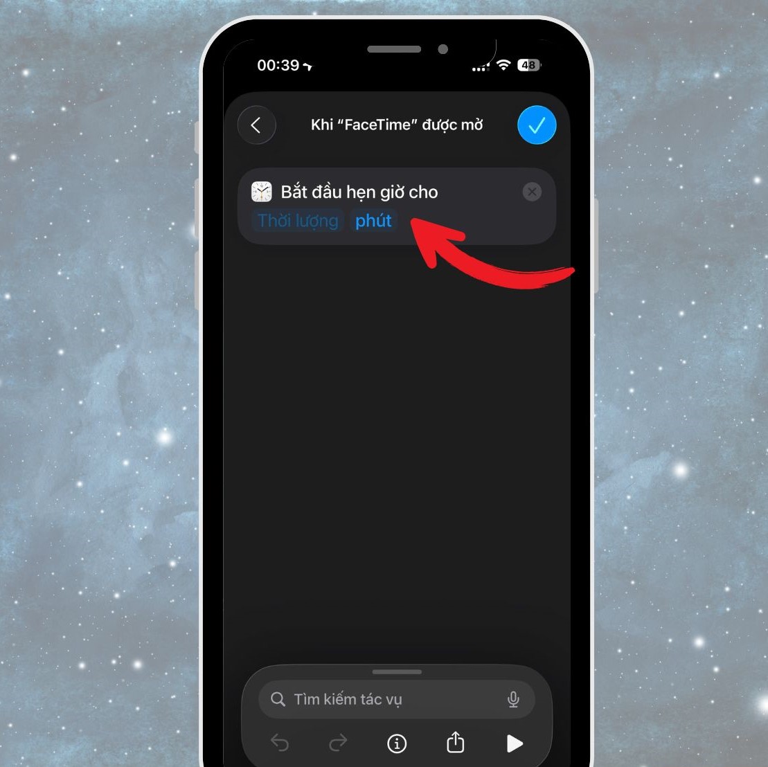 Ứng dụng Phím tắt (Shortcuts) cho phép tạo các kịch bản tự động hóa (Automation), trong đó bạn có thể đặt hẹn giờ để báo khi đã vượt quá thời gian mong muốn. Dưới đây là cách thực hiện: