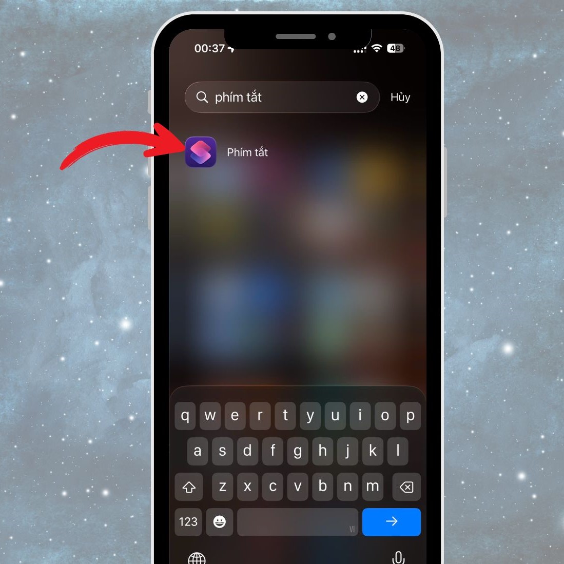 Bước 1: Mở ứng dụng Phím tắt