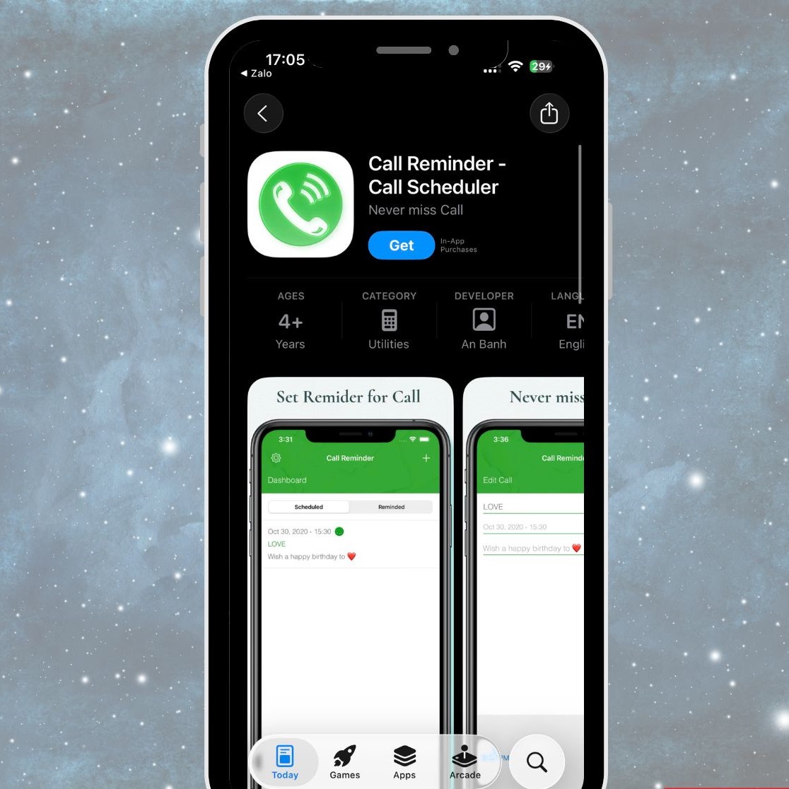 - Link tải: https://apps.apple.com/us/app/call-reminder-call-scheduler/id1393817539
