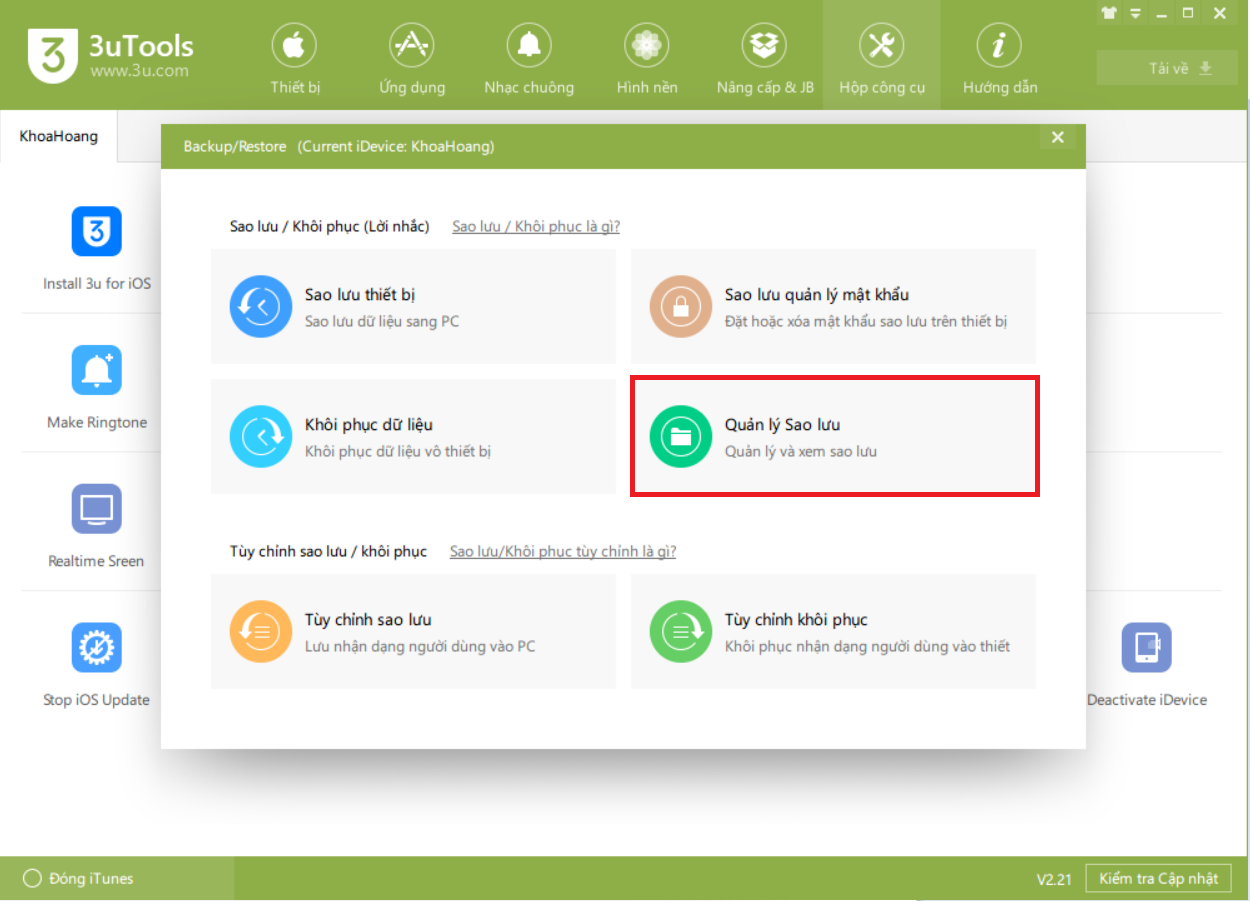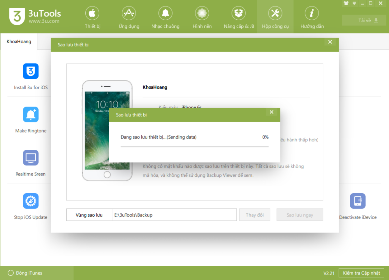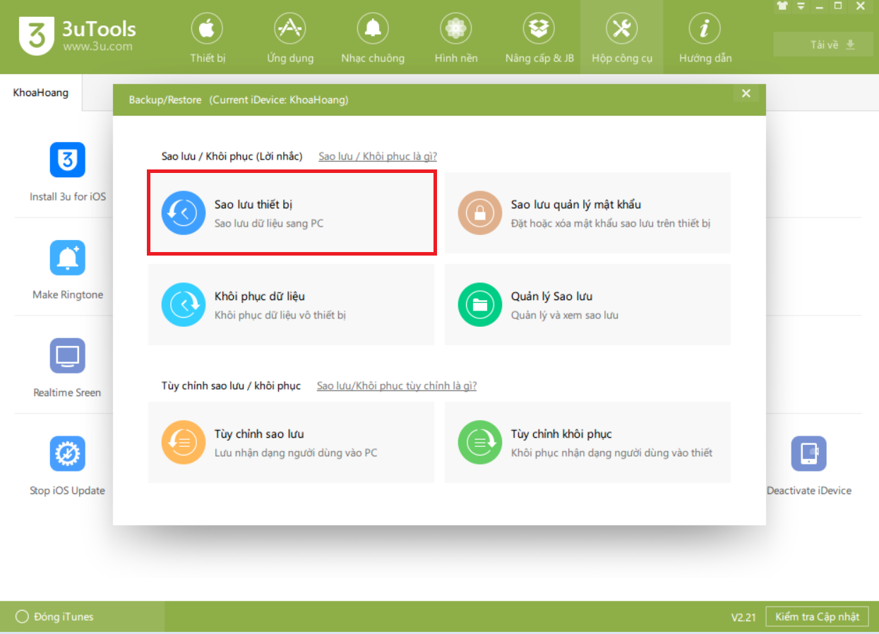 Sử dụng 3uTools để sao lưu