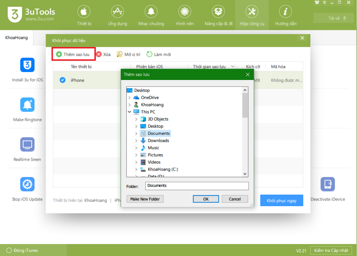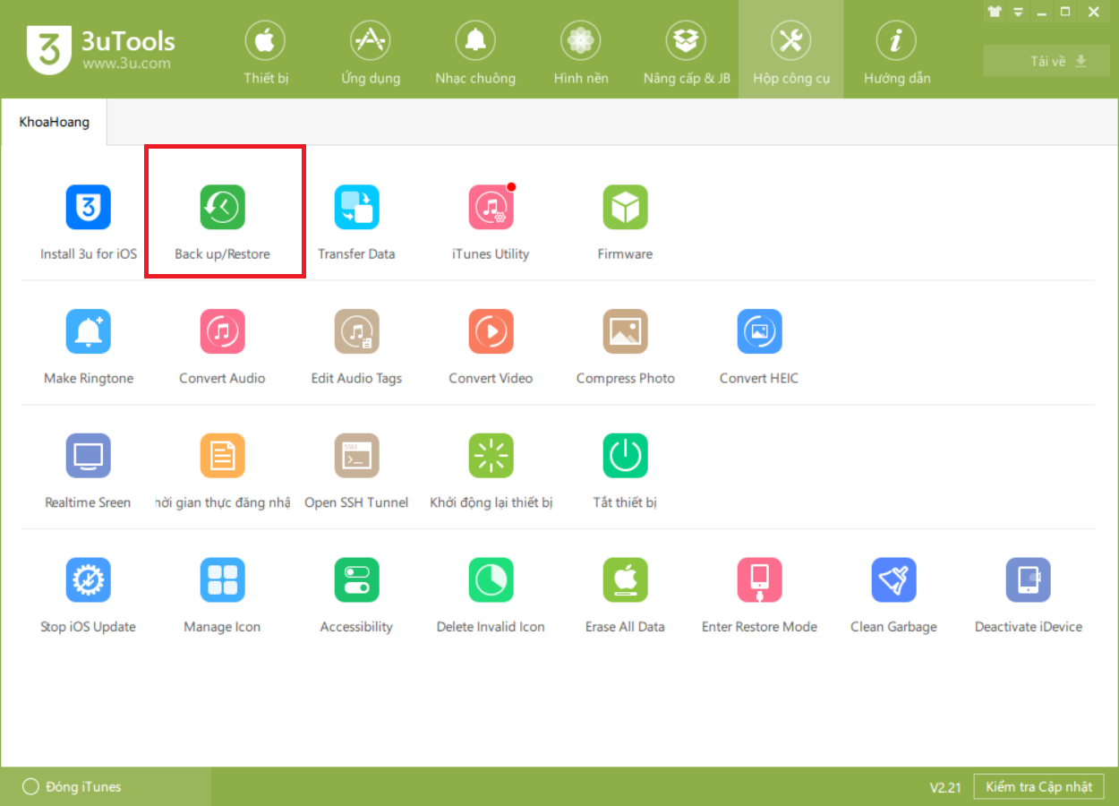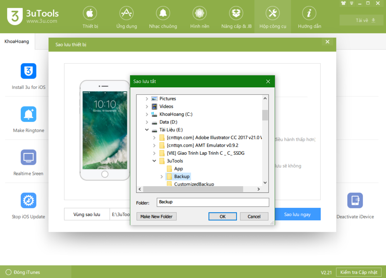 Sử dụng 3uTools để sao lưu
