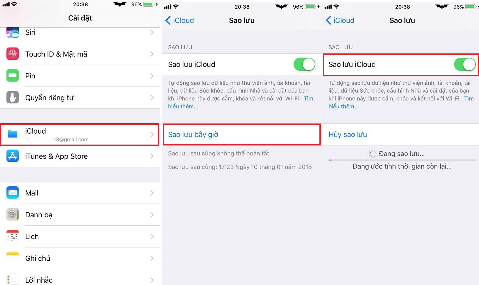 Sao lưu thông qua iCloud