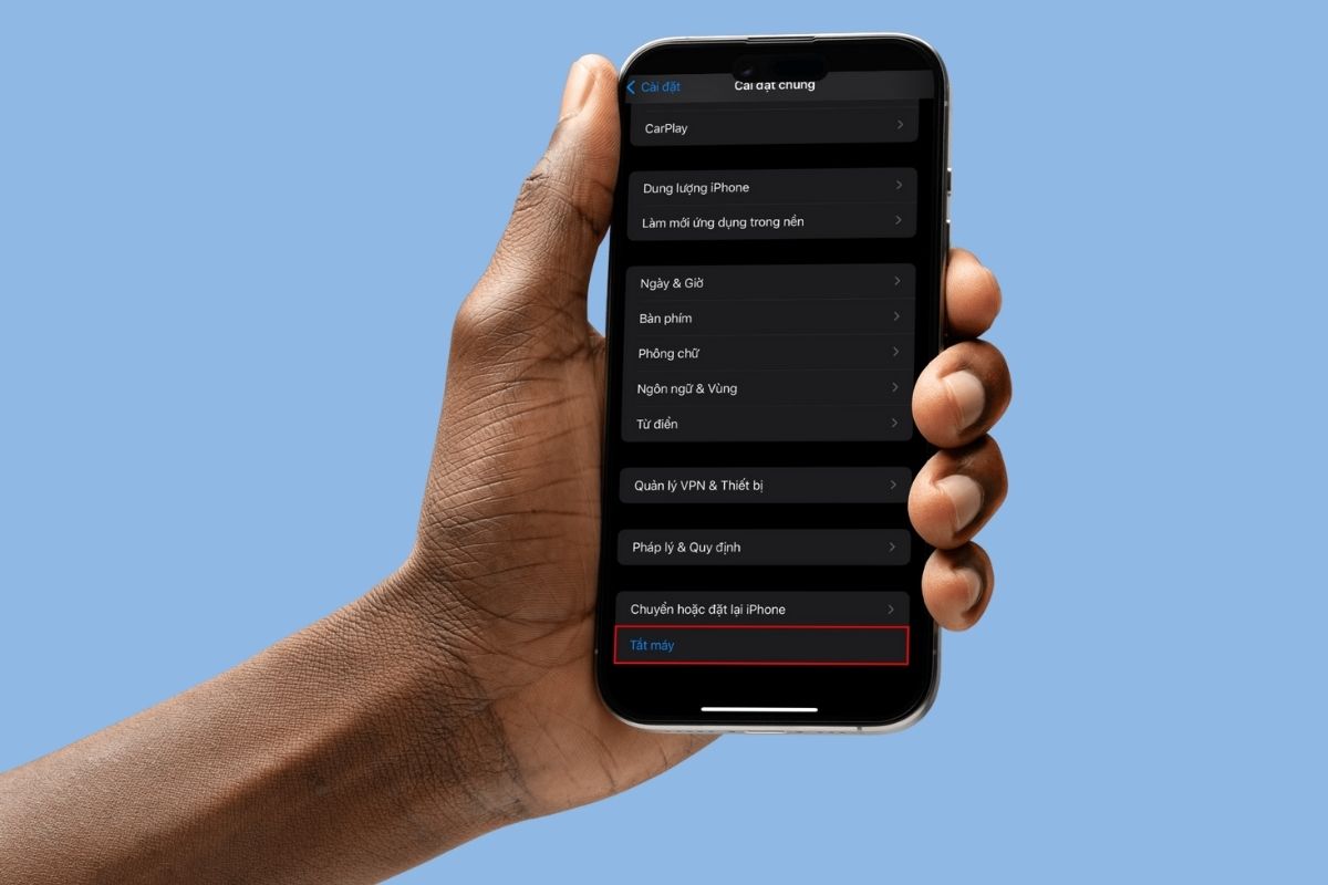 - Trong Cài đặt: Nếu nút nguồn bị hỏng, bạn có thể vào Cài đặt > Cài đặt chung > Tắt máy, sau đó kéo thanh trượt để tắt nguồn.
