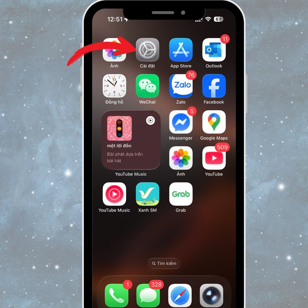 - Trước tiên, hãy mở ứng dụng Cài đặt từ màn hình chính của iPhone.