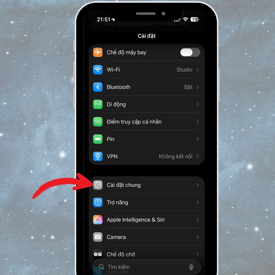 - Sau đó, cuộn xuống và chọn mục Cài đặt chung để truy cập vào các tùy chọn hệ thống.